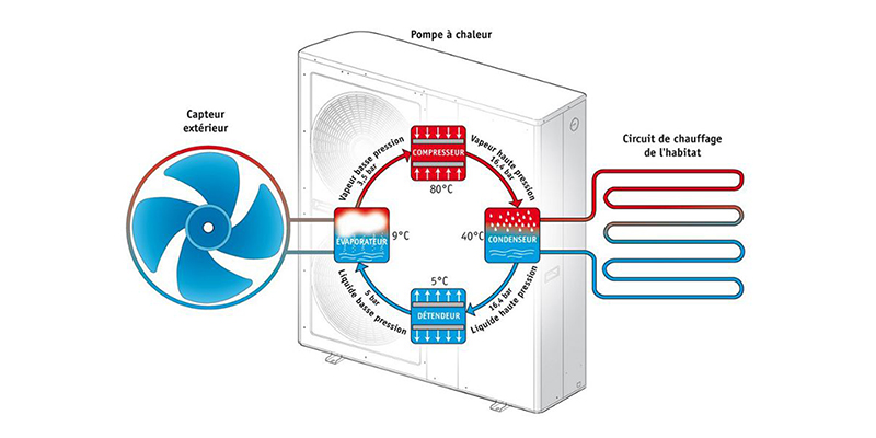 L'aérothermie est un principe thermique utilisant les calories naturellement présentes dans l'air. En effet, même avec des températures négatives, l'air est porteur de calories. Le chauffage par aérothermie utilise donc cette ressource abondante et naturelle afin de porter à température l'air ambiant de l'habitation.
